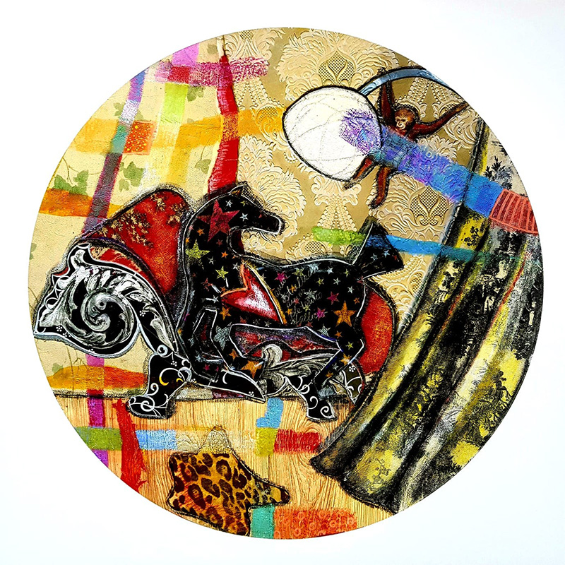 MEDIDA: 70 x 70 cm DESCRIPCIÓN: Grabado fine art intervenido con acrílico y folia. Enmarcado con moldura color plata