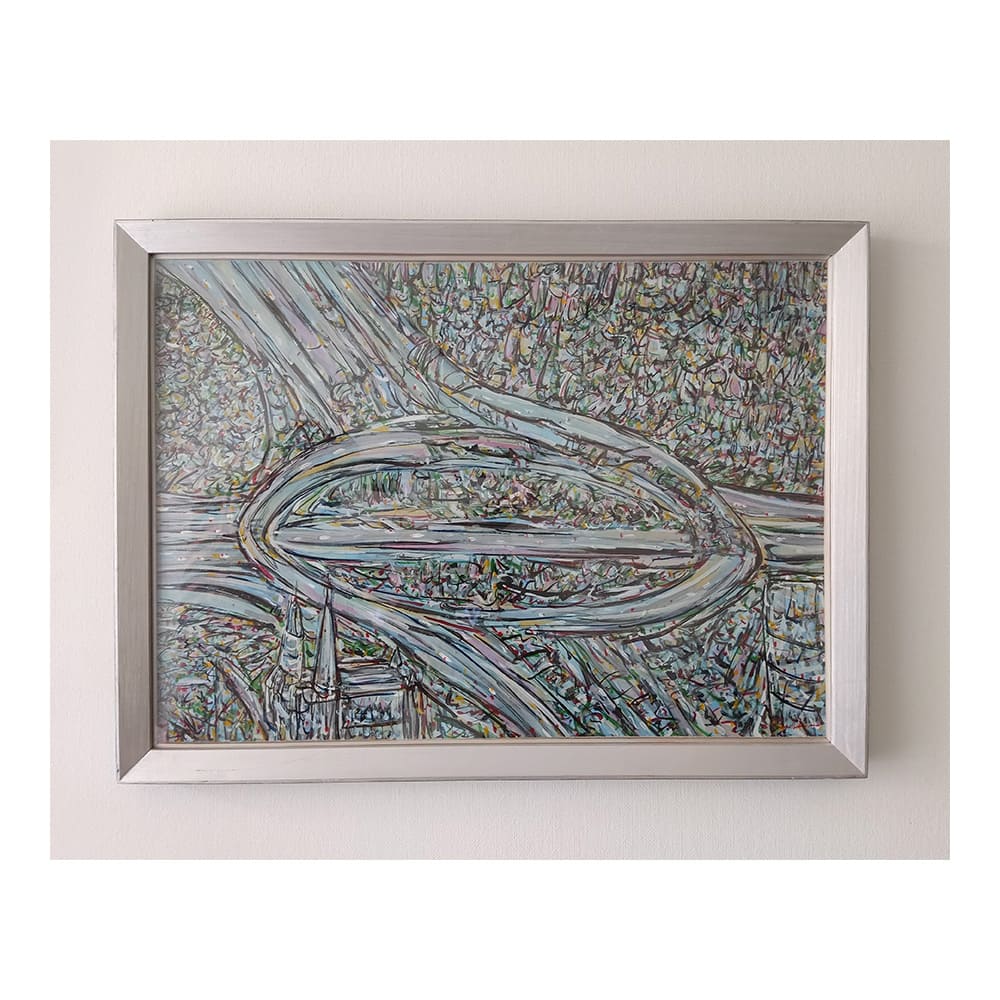 DESCRIPCIÓN: Acrílico sobre cartón, pieza única. Obra de la serie “Horizonte progresivo”, año 2021. Obra enmarcada