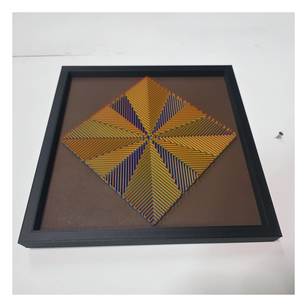 MEDIDA: 32 x 32 cm DESCRIPCIÓN: Ácido poliláctico fundido sobre soporte, año 2025. Obra enmarcada