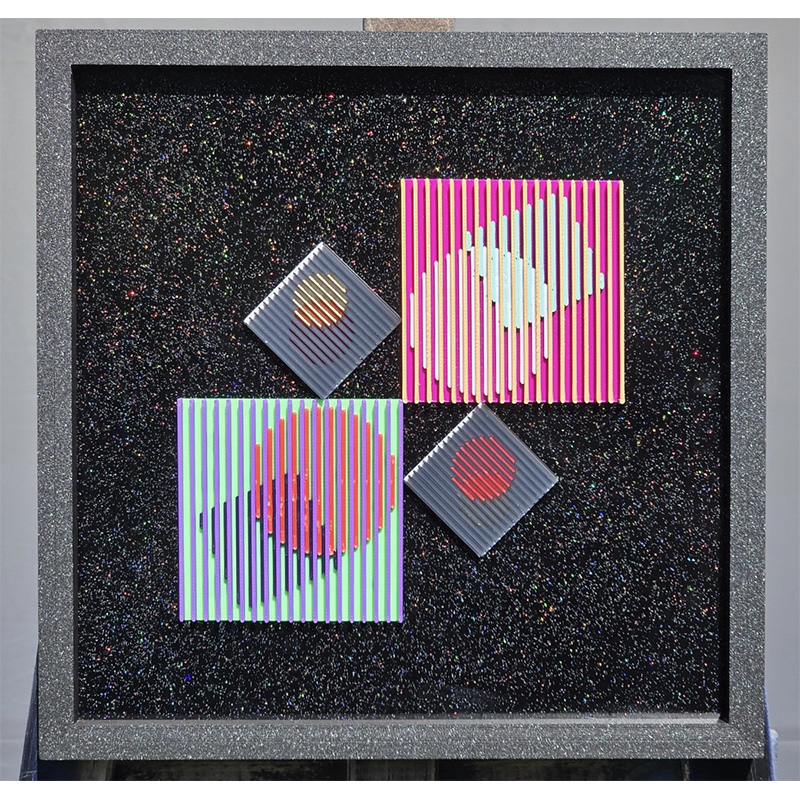 DESCRIPCIÓN: Ácido poliláctico fundido sobre soporte preparado, año 2025. Obra enmarcada. Desarrollado con tecnologías de impresión 3D eco amigables