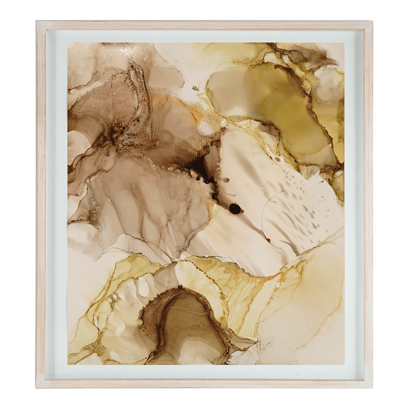 Esta obra fue realizada el año 2025 con pigmentos de tinta al alcohol sobre papel sintético, en marco tipo cajón de madera mañío pintada con aguada blanca.