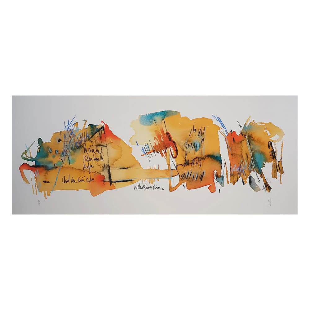 DESCRIPCIÓN: Impresión digital intervenida al pastel seco, serie de 9 ejemplares. Las intervenciones realizadas de manera directa con pastel seco y crayón la potencian como original único e irrepetible.
