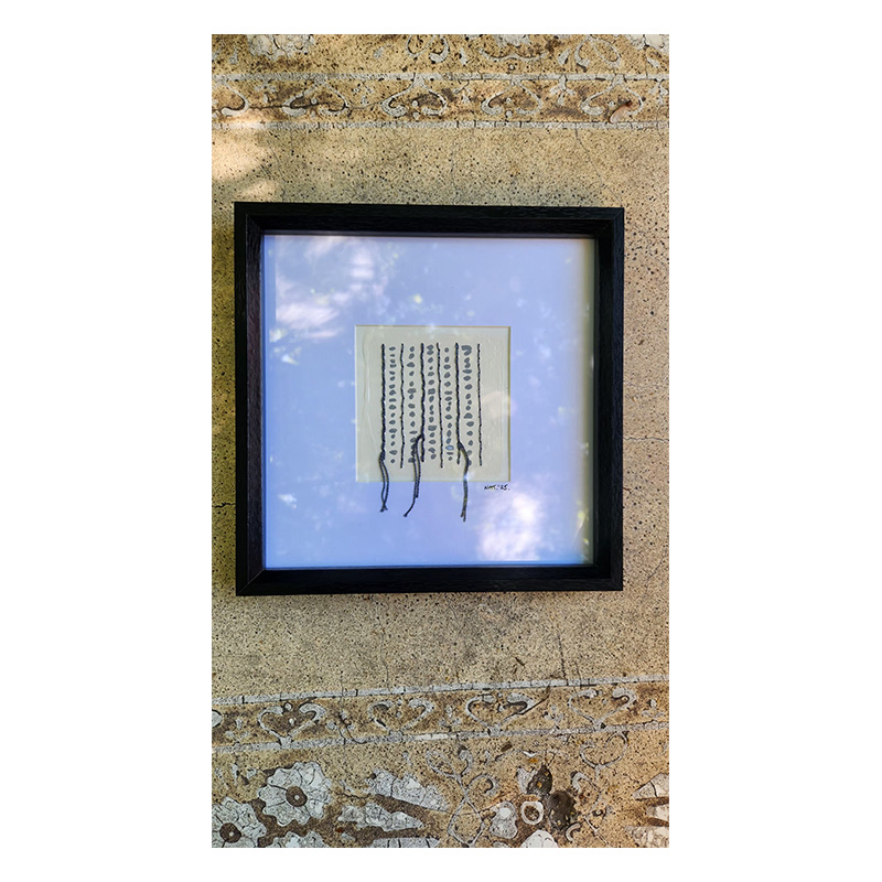 DESCRIPCIÓN: Papel de acuarela intervenido con pintura acrílica y bordado con hilos de algodón. Medidas de obra 10 x 10 cm. Obra enmarcada