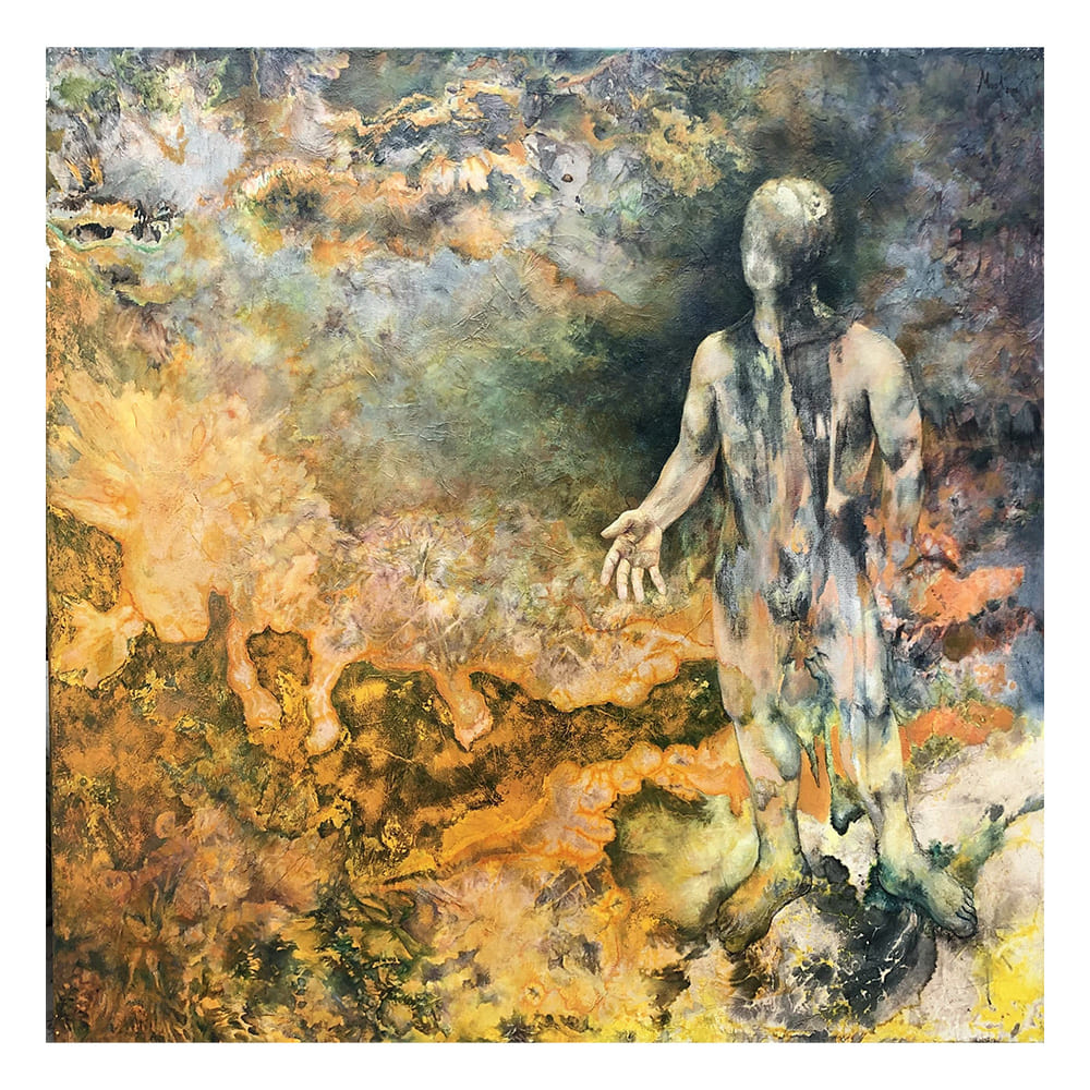 MEDIDA: 100 x 100 cm DESCRIPCIÓN: Técnica mixta, óleo y papel sobre tela en bastidor